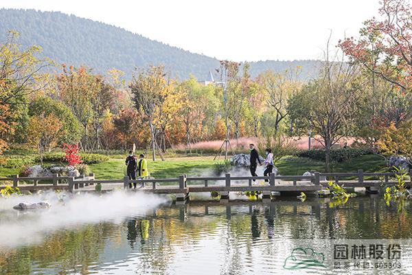 尋境:天人合一,共繪西湖。溪水順山勢而下,飛流成瀑。沿著溪邊的小路緩緩而下,跨過山腳下的 “錦帶橋”,就是“尋香”展區(qū)?!皩は恪闭箙^(qū)以樾香亭為主景,圍繞西湖四季主題花香營造氛圍,結合花境、小徑等,打造芳香沁人、繽紛多彩的五彩花園,暢享悠然自得。