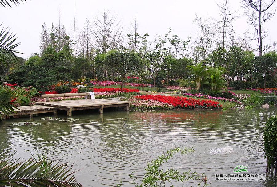 第六屆中國花博會之浙江園,又名花漫錢塘。占地面積1420平方米,呈自然式布局,全園以浙江山水為背景,以母親河錢塘江奔流入海為主線,一灣流水貫穿全園,"錢江源"、"晴空海蜃"兩大景觀交相輝映。園內(nèi)綠樹盎然,花漫遍地,洋溢著浙江的朝氣與活力,體現(xiàn)了浙江自然山水、人文歷史、經(jīng)濟社會的和諧。