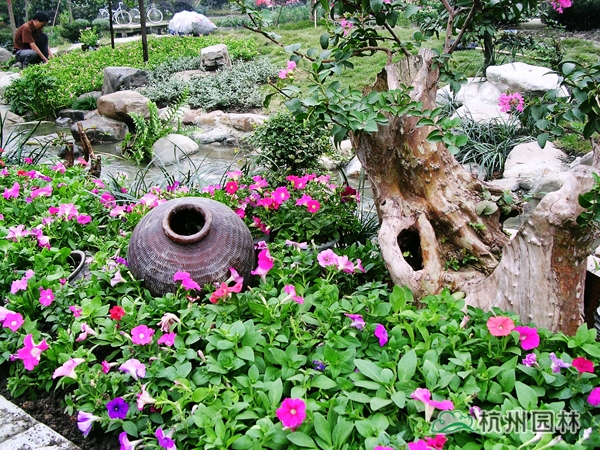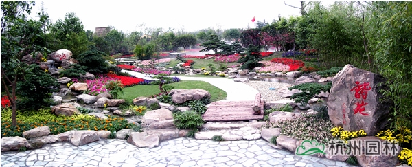 第六屆中國(guó)花博會(huì)之浙江園,又名花漫錢(qián)塘。占地面積1420平方米,呈自然式布局,全園以浙江山水為背景,以母親河錢(qián)塘江奔流入海為主線,一灣流水貫穿全園,“錢(qián)江源”、“晴空海蜃”兩大景觀交相輝映。園內(nèi)綠樹(shù)盎然,花漫遍地,洋溢著浙江的朝氣與活力,體現(xiàn)了浙江自然山水、人文歷史、經(jīng)濟(jì)社會(huì)的和諧。