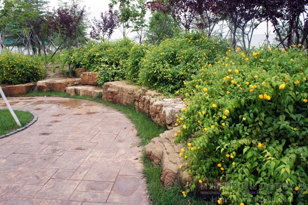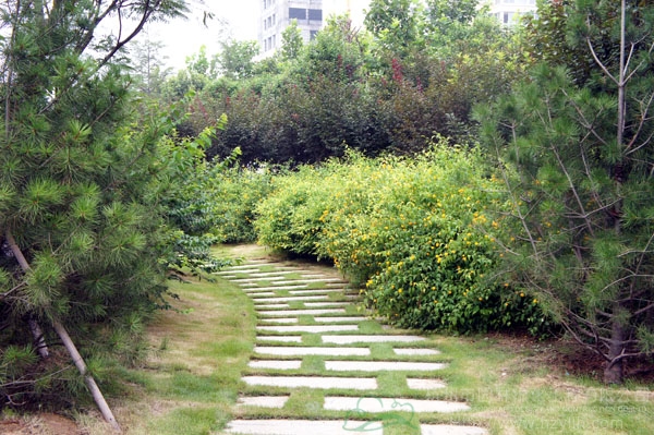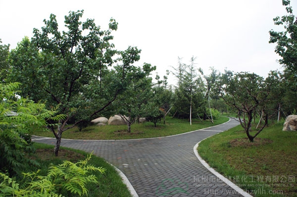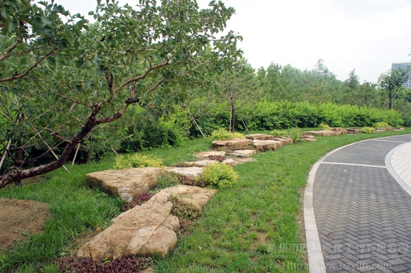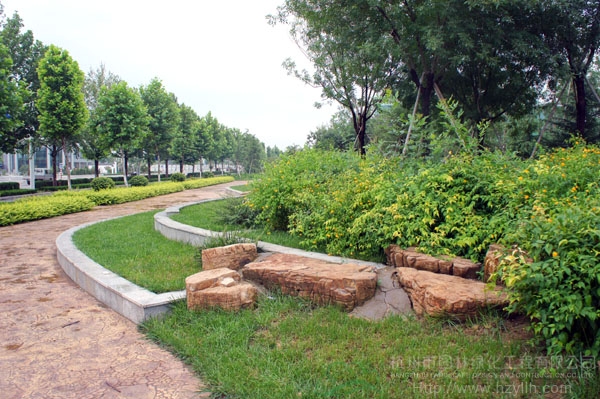 山東壽光市東環(huán)路東側綠化改造工程(圣城街-北環(huán)路)面積9萬平方米,施工范圍為機動車道與非機動車道之間2.5米的隔離綠化帶和30多米寬的路側綠化帶,施工內容包括土方地形整理、綠化種植、園路鋪裝、景石擺放、景觀小品營建等。2009年9月開工,2010年7月竣工。經過2年的精心養(yǎng)護,如今,這里樹木蔥郁,花草繁茂,一路走來,隨著多種風格的園路在腳下延伸,風景也在眼前不斷變化。