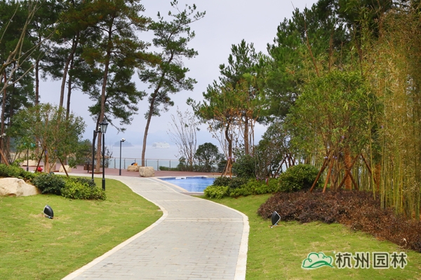 該工程位于浙江省淳安縣千島湖大石坪半島,主要施工內(nèi)容包括綠化種植、硬質(zhì)鋪裝、景觀土建、景觀水電安裝等。千島湖以大旅游業(yè)為龍頭的服務(wù)經(jīng)濟(jì)前景廣闊,該酒店獨(dú)具特色的綠化景觀將成為千島湖酒店服務(wù)領(lǐng)域的一大亮點(diǎn)。