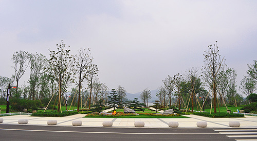 云龍湖珠山景區(qū)景觀綠化工程總占地面積80公頃,全長3.6公里,施工面積63萬余平米,施工內(nèi)容主要包括土方造型、綠化種植、廣場(chǎng)園路鋪裝、道教主題廣場(chǎng)、沉水廊道、木棧道、景石營造、古建筑等。設(shè)計(jì)主題突出"徐州新天地和珠山新印象",總體風(fēng)格體現(xiàn)"人文、生態(tài)、活力",共分為濱湖主入口廣場(chǎng)區(qū)、水杉林游覽區(qū)、濱湖休閑景觀區(qū)、水生植物游覽區(qū)等9個(gè)功能區(qū)及觀魚沉水廊道、道教主題廣場(chǎng)、水杉林大道、沿湖木質(zhì)棧道等多個(gè)景觀節(jié)點(diǎn)。工程施工共分三個(gè)標(biāo)段,其中,杭州市園林綠化股份有限公司承建的是二標(biāo)段。
