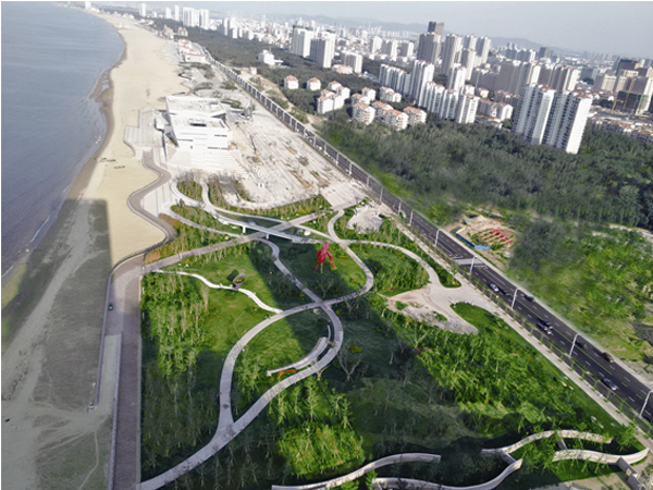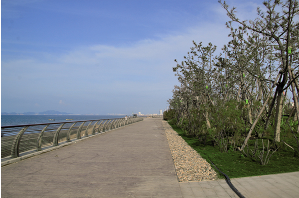 煙臺(tái)屬暖溫帶季風(fēng)氣候,但是瀕海地又受到海洋性氣候的影響,經(jīng)常受海潮海風(fēng)侵襲和土壤鹽漬化、干旱化威脅,導(dǎo)致適宜生存的植物種類少、綠化難度大。該項(xiàng)目緊臨海邊,因此,如何正確選擇植物品種,在提高植物成活率的同時(shí)又保證景觀效果的豐富,是其面臨的一大難題。