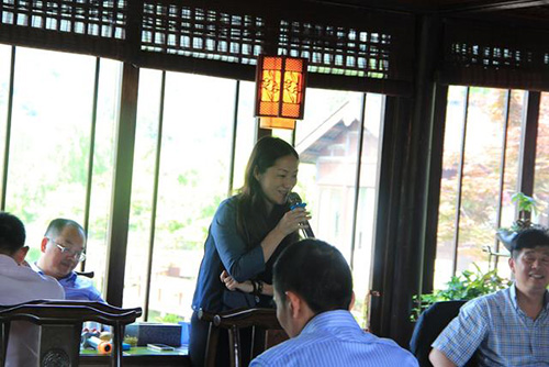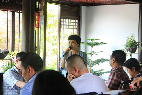 在畫境·青山湖花園一間中式木樓中,聚集著近30位江干區(qū)政府、發(fā)改局和各行各業(yè)的優(yōu)秀企業(yè)家。