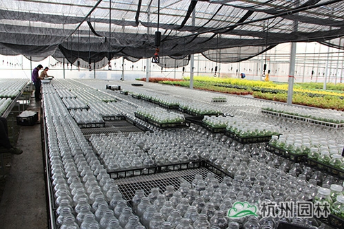 杭州畫境種業(yè)有限公司徑山基地基礎(chǔ)建設(shè)已于2014年基本完工,包括蔭棚地塊建設(shè)、基質(zhì)攪拌、辦公室、倉庫等,其中,新建的溫室大棚已全面投入使用,由公司自行組培的16萬棵火焰南天竹也進(jìn)入了煉苗階段,畫境種業(yè)的員工和工人們一起,通力合作,爭(zhēng)取以最高的效率完成煉苗工作,總經(jīng)理黃民強(qiáng)也親臨現(xiàn)場(chǎng),給大家指導(dǎo)與支持。在領(lǐng)導(dǎo)的關(guān)心下,大家信心倍增,計(jì)劃在一周內(nèi)完成全部煉苗工作?;鹧婺咸熘?,是公司組培研發(fā)生產(chǎn)的新品種,它植株低矮,枝葉密集;幼葉及冬季葉亮紅色至紫紅色,初秋葉變紅色,比南天竹紅色葉深,變色期早;喜溫暖濕潤、通風(fēng)良好的半陰環(huán)境,較耐寒,生長較快,在園林景觀中的應(yīng)用比較廣泛。