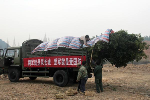 為給官兵營建綠色的生活環(huán)境,杭州市政府從杭州市園林綠化工程有限公司位于臨安泉口的苗木基地選購了一批桂花樹送給駐舟山部隊。據(jù)悉,此次選購的桂花為蓬徑1.8米至3.5米的大苗,品種有四季桂、硬葉丹桂、波葉金桂等。同時,該公司還派出了專業(yè)技術(shù)人員前往舟山指導種植工作。