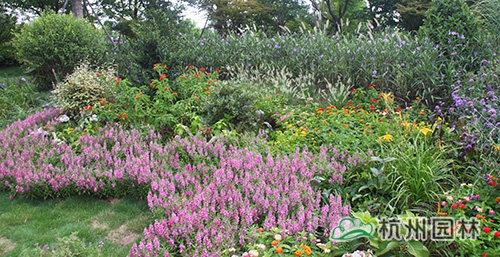 由于植物生長(zhǎng)的季節(jié)性,在炎熱的八月份進(jìn)行花境營(yíng)造,不止考驗(yàn)植物產(chǎn)品的適應(yīng)性,更考驗(yàn)施工技術(shù)。為了保證植物的成活率,這處花境中的植物都是精挑細(xì)選,從植物品種上考慮,挑選的都是適合夏季花境營(yíng)造的植物,并且將宿根花卉與灌木、常綠植物與彩葉植物等有機(jī)結(jié)合,營(yíng)造出絢麗多姿的花境景觀。為了保證工程進(jìn)度,施工人員頂著烈日,冒著酷暑,不但在施工中精益求精,從地形營(yíng)造、植物搭配、植物種植等各方面嚴(yán)格把關(guān),在養(yǎng)護(hù)中更是用心,定時(shí)澆水,修剪干枯的枝葉等,保證了花境的景觀效果始終呈現(xiàn)出最佳狀態(tài)。