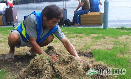 烈日下,他們?cè)谶M(jìn)行苗木養(yǎng)護(hù)工作,美景,離不開(kāi)他們的辛苦付出