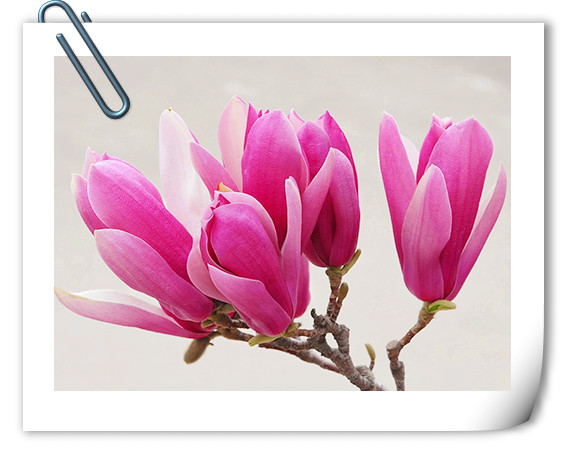 不同顏色的玉蘭中,開(kāi)得最早的,當(dāng)數(shù)白玉蘭,那純正的白色花朵,纖塵不染,清雅秀麗中有著瓷器的溫潤(rùn)質(zhì)感,仿佛一件件潔白的工藝品,很想將它捧在手心,慢慢品味它的精致與美麗。紫色的玉蘭花,則有著淡淡的華貴氣質(zhì),那含苞欲放的花朵,酷似一枝枝飽蘸紫色墨水的毛筆,揮灑自如間,描繪出獨(dú)屬于春天的明艷風(fēng)情。黃色的玉蘭花,呈現(xiàn)出淡淡的鵝黃色,柔柔的,嫩嫩的,帶著清新寧?kù)o的氣息,有著超凡脫俗的美。不同顏色的玉蘭花有著不同的美麗,但每一種都那么迷人,充滿靈動(dòng)的氣息。