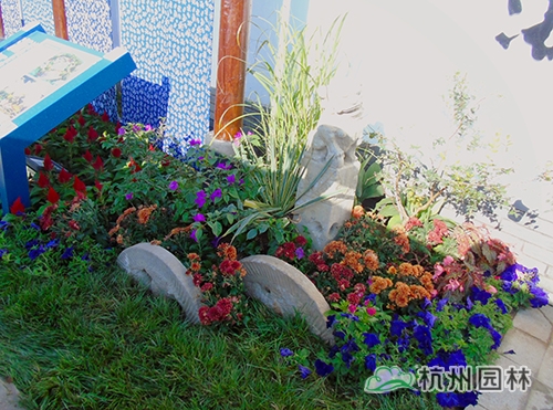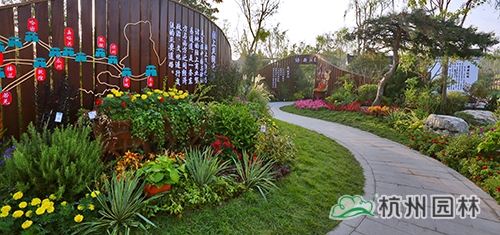 考慮到銀川的干燥氣候,垂直綠化墻植物的保濕成為難題?!罢憬瓐@”垂直綠化墻以無紡布為墻體材料,使用保濕性強的基質(zhì),優(yōu)選植物種類,同時搭配滴灌系統(tǒng),保證了綠化墻鮮花擁簇的景象。展園內(nèi)的垂直綠化墻設(shè)計簡潔、曲線優(yōu)美,與以錢塘江文化為主題的背景墻相互映襯,共同展現(xiàn)了新時期浙江園林景觀的不斷發(fā)展與創(chuàng)新。