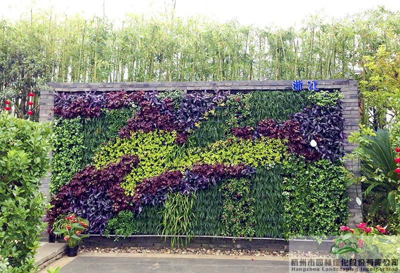 浙江省的新型垂直綠墻技術(shù)在國(guó)內(nèi)處于領(lǐng)先水平。位于展園富春山居負(fù)一層門口右側(cè)的垂直綠墻,選用小葉梔子、龜甲冬青、黃金海岸線柏、火焰南天竹、哈伯南天竹、常春藤、吊蘭等植物,以“絲”為筆,用流暢的線條勾勒出浙江絲綢之美、體現(xiàn)浙江絲綢之韻,描繪出一幅柔軟飄逸的浙江絲綢之畫(huà)。