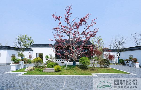 盆景園內(nèi),一棵棵造型別致的盆景,是海棠另一種形態(tài)的展現(xiàn)。院子中央,高大的‘豐盛海棠’正迎來(lái)盛花期,深粉色的花朵密密匝匝布滿(mǎn)枝頭,成為院中最引人矚目的風(fēng)景,與院子里的五棵柿子樹(shù)搭配種植,組合成“五世同堂”的美好寓意,寓示著日子紅紅火火、闔家歡樂(lè)吉祥。在主建筑旁的天井處,采用盆景化的造園手法,運(yùn)用南天竹、黑松、石子等元素營(yíng)造的植物小景,自成一方小天地,與整個(gè)盆景園形成“園中園”的關(guān)系,展現(xiàn)出造園者的奇妙心思。
