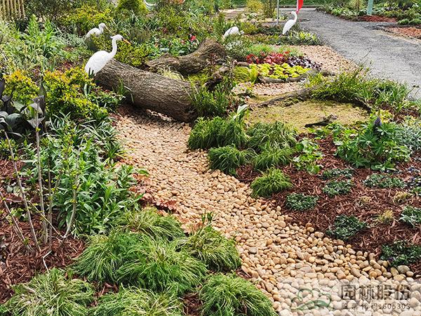 “澤·頌”花境景觀選取了濕地中三種類型,分別以木本花境、觀賞草混搭宿根植物、枯木苔蘚三種植物景觀模式,模擬自然濕地的灌叢、草甸、蘚類三種不同類別濕地景觀,通過(guò)豐富的花境植物材料及水鳥(niǎo)造型、枯木等的應(yīng)用,表現(xiàn)近幾年來(lái)建設(shè)新時(shí)代美麗杭州、打造“濕地水城”、提升生態(tài)人文景觀建設(shè)過(guò)程中取得的成果。