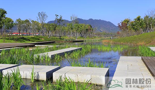 項(xiàng)目還充分利用滸溪及靈峰湖沿線的湖灣和眾多洼地,引水入園,打造雨水花園、下沉式綠地等,通過豐富的植物配置與景觀小品,形成沿湖而生的各個(gè)景點(diǎn),并設(shè)置各色景觀橋連通內(nèi)塘與外湖的生態(tài)通道,將周邊景點(diǎn)有機(jī)串連。花木葳蕤景色各異,湖光山色相映成趣,整個(gè)滸溪沿線形成一個(gè)可循環(huán)的生態(tài)系統(tǒng),有效改善和美化了周邊環(huán)境,展現(xiàn)可持續(xù)發(fā)展的造園理念。
