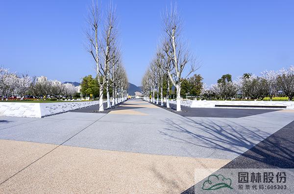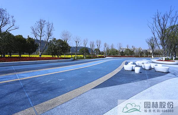 從各個(gè)廣場(chǎng)到沿溪綠道,全部采用透水混凝土材料,并在兼顧排水功能的同時(shí),通過色彩、圖案的變化,營(yíng)造移步換景的濱水景觀。廣場(chǎng)鋪裝主要選用深灰、淺灰、土黃等色彩的透水混凝土材料,根據(jù)現(xiàn)場(chǎng)景觀配色需求,設(shè)計(jì)不同的鋪裝組合,營(yíng)造大氣自然、豐富多變的廣場(chǎng)景觀。靈溪公園入口處的波紋廣場(chǎng),則以藍(lán)色透水混凝土材料為主,搭配亮麗的黃色,營(yíng)造出流暢自然、色彩明亮的波紋效果,充滿了流動(dòng)的旋律,再加上極富特色的異形樹池、坐凳,整個(gè)廣場(chǎng)又呈現(xiàn)出時(shí)尚的現(xiàn)代風(fēng)情,帶給人們更加豐富的濱水景觀體驗(yàn)。