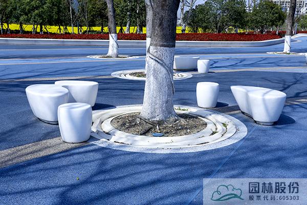 造型豐富美觀的泰科石坐凳和樹池是項(xiàng)目中的一大亮點(diǎn)。在波紋廣場(chǎng)和兒童樂園等地方,采用高強(qiáng)度復(fù)合無機(jī)泰科石材料,造型為圓形、橢圓形、異形的各種坐凳和樹池,錯(cuò)落有致地分布,潔白的顏色與彩色的混凝土鋪裝相映成趣,既可以作為行人休憩的地方,又成為景觀的一部分。這些坐凳和樹池均以模具工藝成形,造型美觀,集現(xiàn)代休閑與實(shí)用功能于一體,表面光滑平整,自潔性好,抗污染強(qiáng),維護(hù)簡(jiǎn)單,只需擦拭后水管沖洗即可。