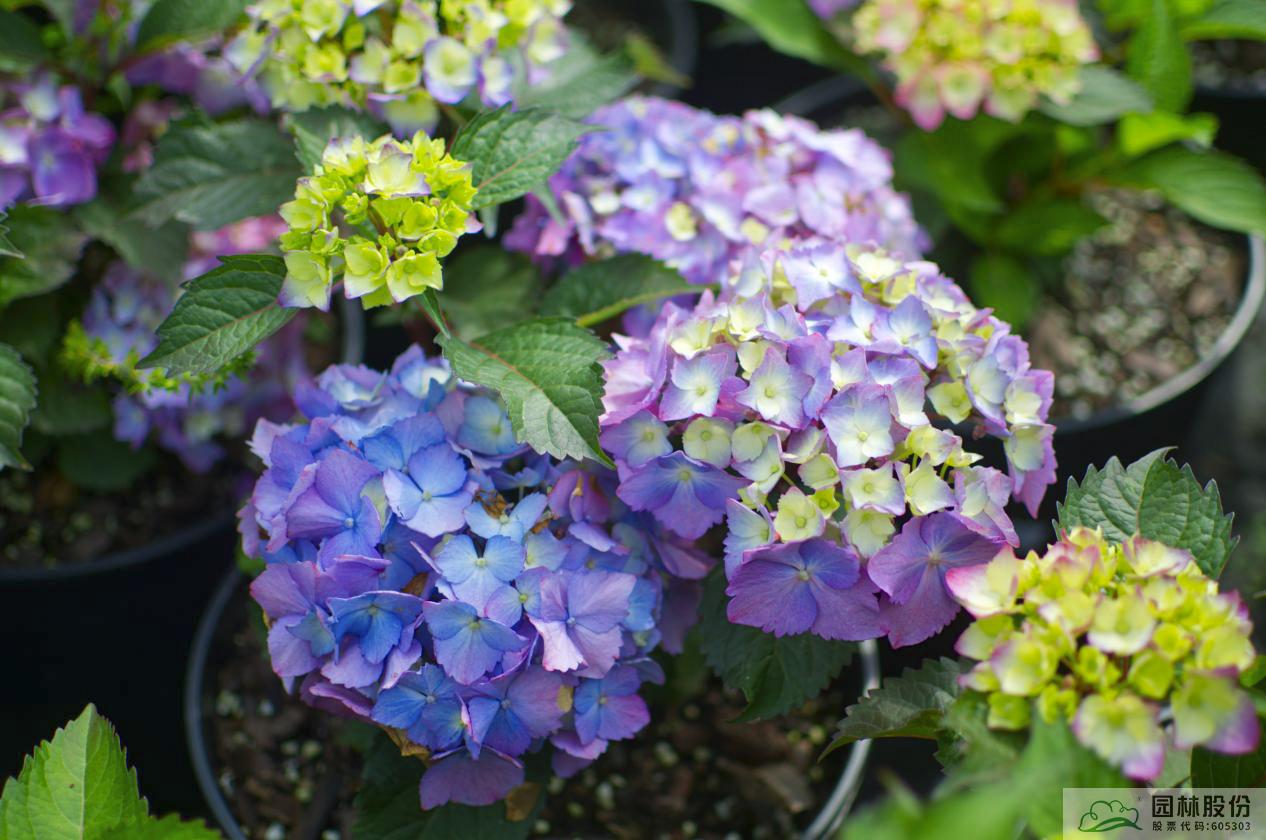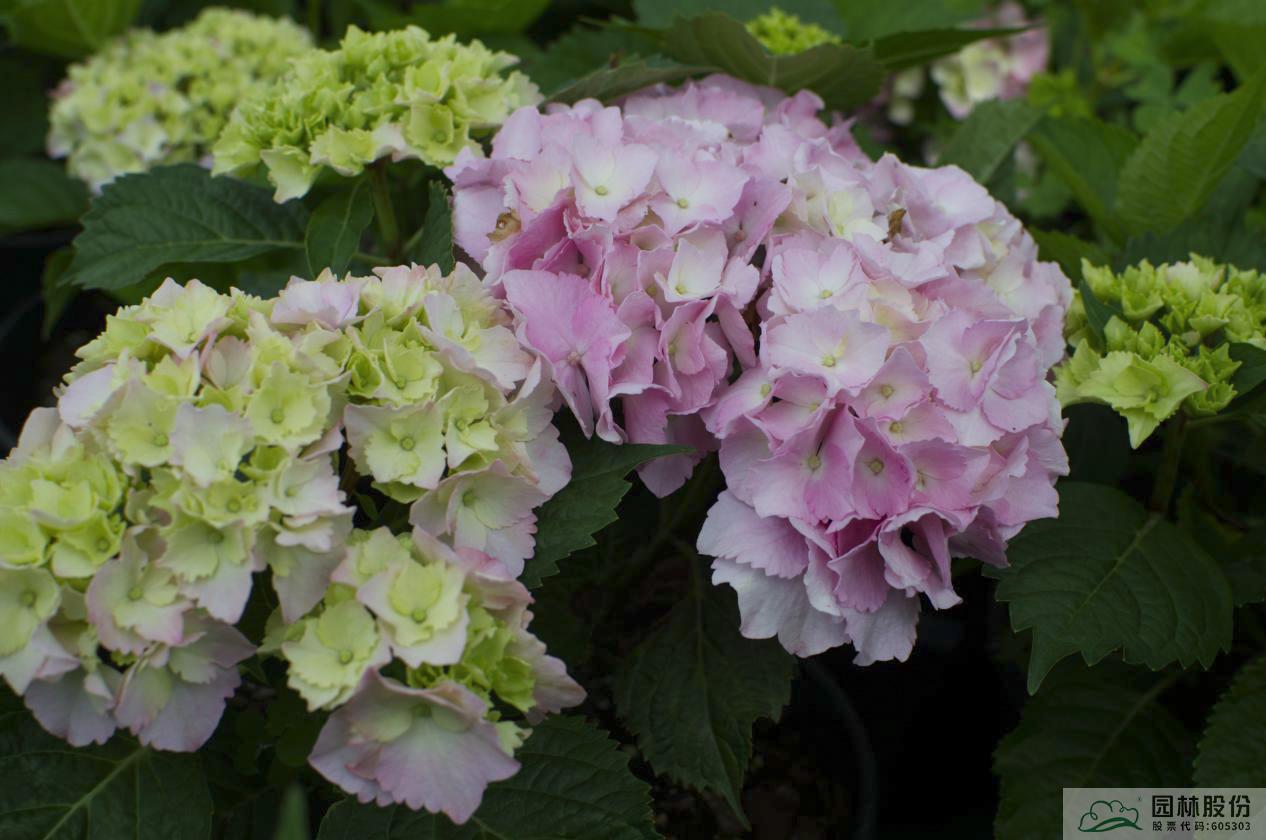 繡球品種繁多,花色豐富,在杭州市園林綠化股份有限公司的研發(fā)基地里,企業(yè)自主培育的青山系列繡球,已有20個(gè)品種。該系列繡球品種具有植物強(qiáng)健、直立性好、抗逆性強(qiáng)、花期早、開(kāi)花時(shí)間長(zhǎng)、花色艷麗豐富等特性。
