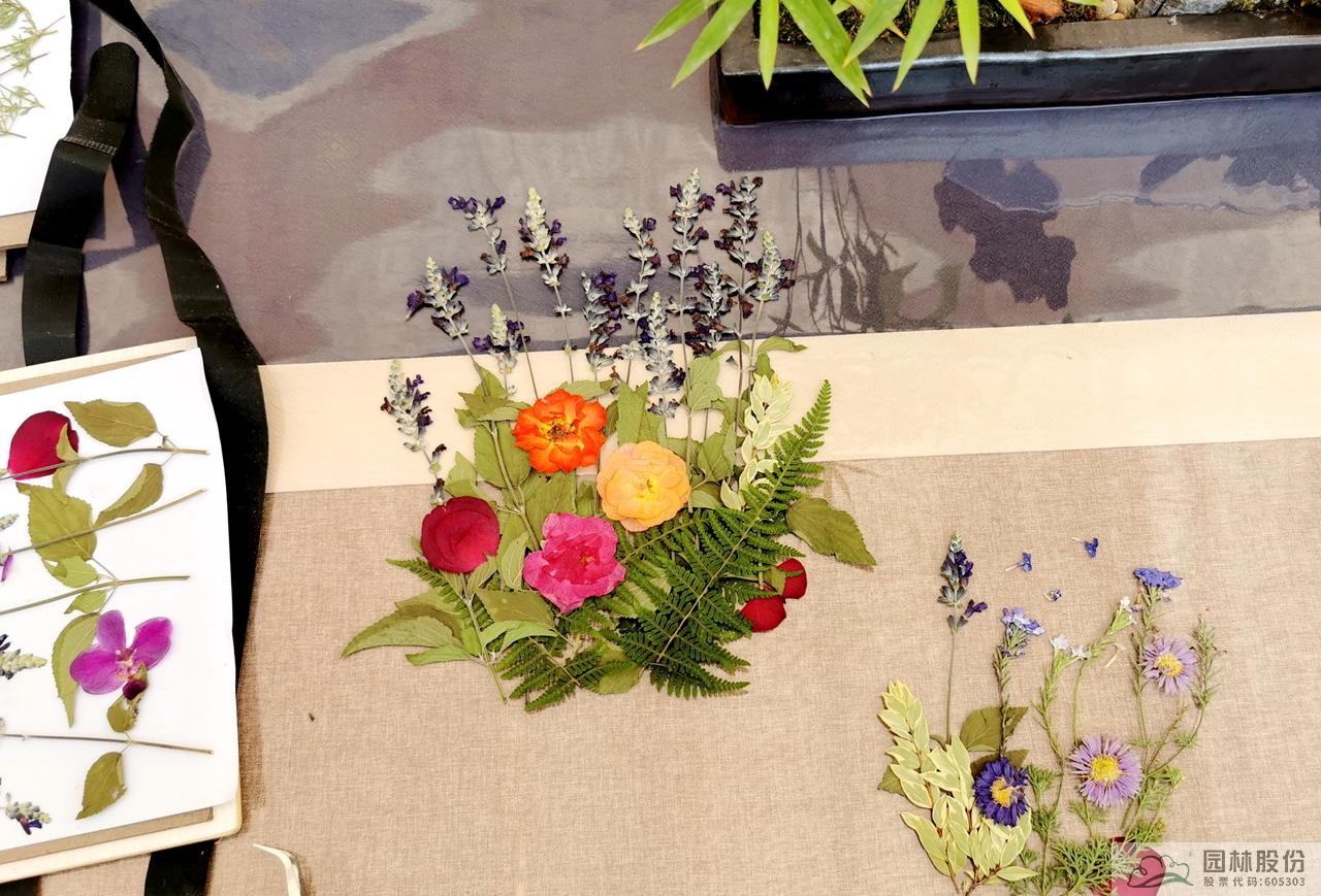 適合制作壓花的植物種類很多,花灌木、小喬木、草本花卉等都可以。畫境全年擁有豐富的植物庫,天氣晴朗的上午,是收集花材的最好時間,清洗掉花葉上的塵灰,修剪多余的花葉枯枝,去除花粉,收集工作就此完成。