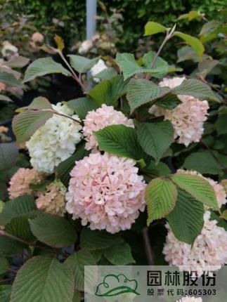 忍冬科莢蒾屬,落葉灌木,國內從日本引進,株高可達2.5-3m。新葉成暗紅色,后期會慢慢褪去,呈綠色。整個花序都是不育花,球形,花苞粉綠色,開放后淡粉色,最后變成白色?;ㄆ?月初到5月初。秋天的樹葉顏色多變,像油畫調色板一樣絢麗多彩。它適應我國大部份地區(qū)種植,病蟲害較少。冬季至早春可修剪。一年施肥3次,早春萌芽前,花后及秋季。適合園藝盆栽或庭院觀賞。
