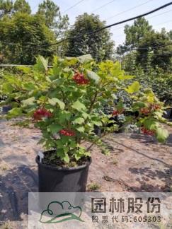 忍冬科莢蒾屬,落葉灌木,高可達4米。葉掌狀,通常三裂,秋季葉色轉紅,特別艷麗。聚傘花序白色,不孕花末期會呈現(xiàn)粉色,花徑較大,花藥呈黃色,花期4-5月。果實較大,形似櫻桃,紅艷誘人,給人以強烈視覺沖擊力,能形成園林觀賞的視覺焦點。觀果期長,可達4個月之久。適應性強,通??勺匀怀尚巍R荒晔┓?次,早春萌芽前,花后及秋季。適合工程應用與庭院觀賞。