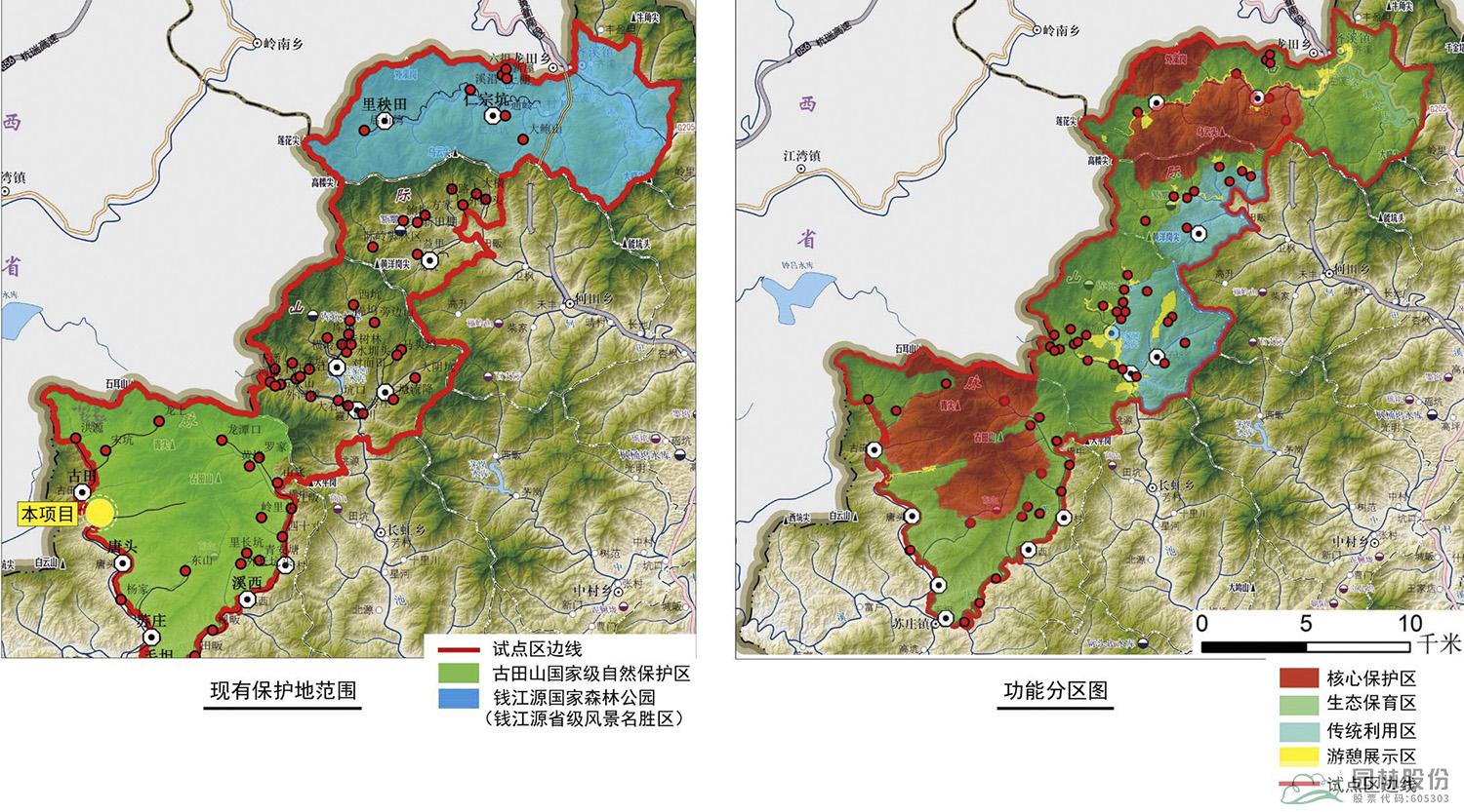錢江源國家公園珍稀植物園設(shè)計范圍北鄰古田村,東至古田山莊,南臨唐頭村,包括油古線兩側(cè)綠地及周邊山體延伸部分。主要設(shè)計內(nèi)容包括科普廣場、木蘭山茶園、殼斗園、茜草百合園、野花園及中科院實驗樓周邊。