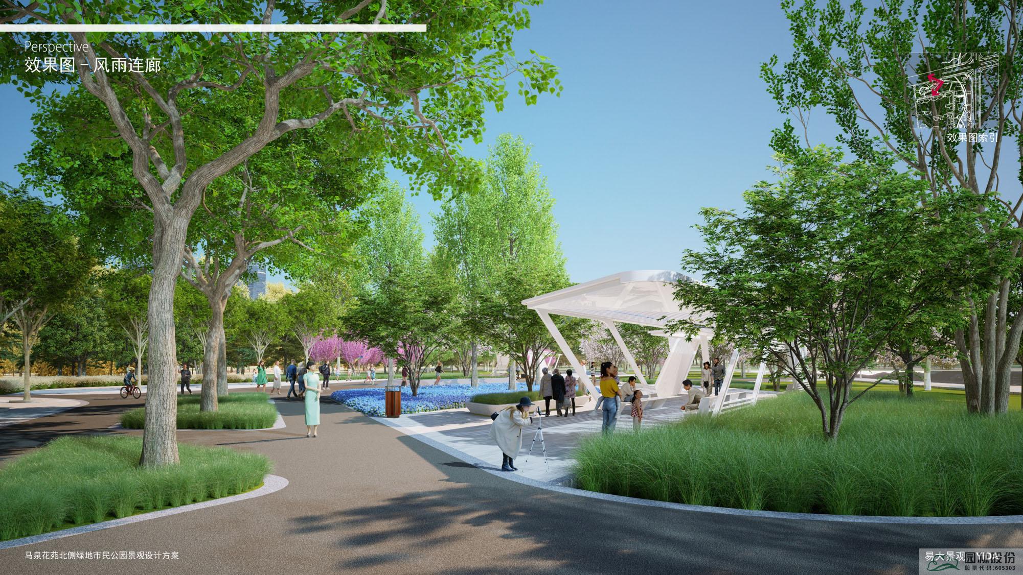二是綠色的邊界系統(tǒng)。提供舒適的綠意休閑空間,舒緩的城市界面,引入雨水花園系統(tǒng);